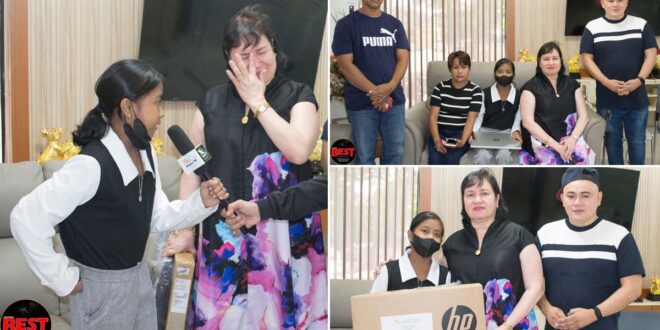 HINDI naiwasang maiyak ng Phililanthropist and Businesswoman na si Ms Cecille Bravo nang ibigay ang ipinangakong laptop sa The 6th Phil. Faces of Success 2025 beneficiary, Ashmae Napalang.
