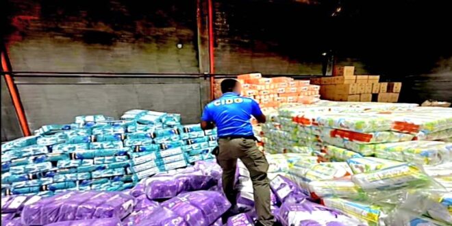 NASAMSAM ng mga operatiba ng Criminal Investigation and Detection Group (CIDG) kontra ilegal na kalakal, ang hindi rehistradong mga disposable diaper sa inilatag na operasyon sa bayan ng Plaridel, lalawigan Bulacan.