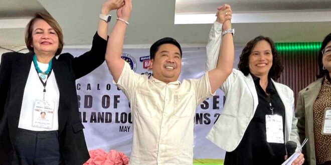 ITINAAS na ng Commission on Elections (Comelec) board of canvassers ang kamay ng nanalong alkalde ng Caloocan City na si Dale Gonzalo “Along” Malapitan matapos tambakan ng boto ang matibay na kalabang si dating senador Antonio “Sonny” Trillanes IV at tatlong iba pa.