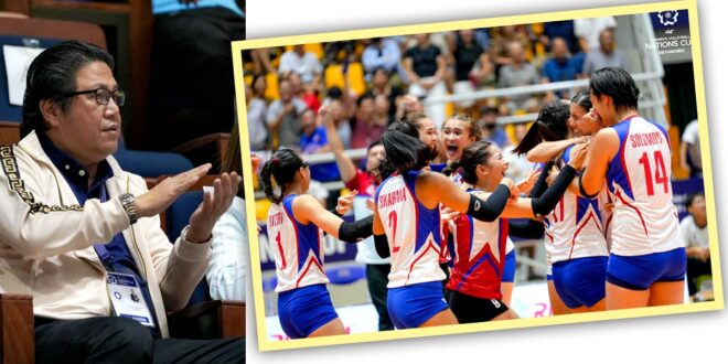 NAKAPASOK ang Pilipinas sa finals ng 2025 Asian Volleyball Confederation (AVC) Women’s Volleyball Nations Cup sa Hanoi matapos ang isang mahigpit na limang set na panalo kontra Chinese-Taipei—isang tagumpay na nagtulak sa pag-angat ng bansa sa pandaigdigang rankings ng FIVB.