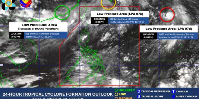 (PAGASA) ang tatlong low pressure area (LPA) na nasa loob at labas ng Philippine Area of Responsibility (PAR).