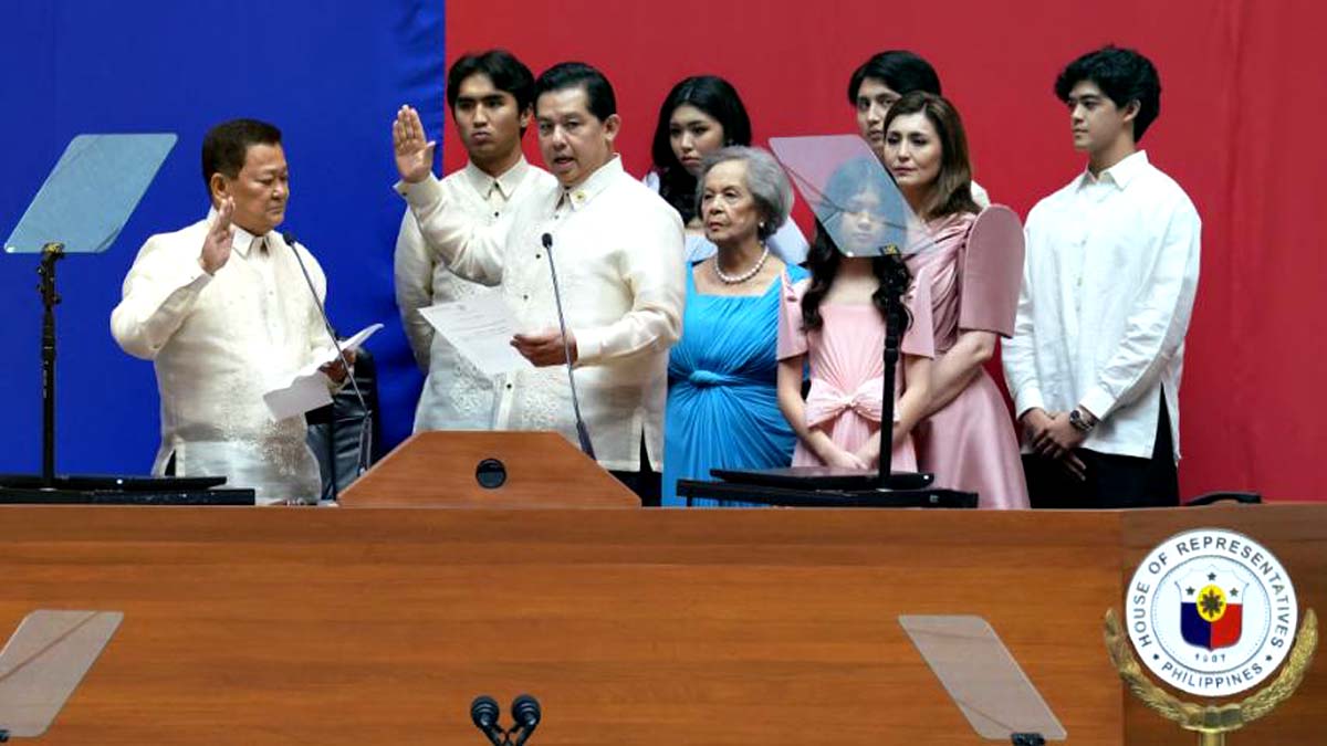 LIHIS sa tradisyon ng Kamara de Representantes na pinanunumpa ang bagong halal na House Speaker sa pinakabatang kongresista, nanumpa si House Speaker Martin Romualdez kay Bulacan Rep. Salvador Pleyto, ang pinakamatandang kongresista ng ika-20 Kongreso ng bansa. Si Pleyto ay edad 83 anyos sa kasalukuyan. (GERRY BALDO)
