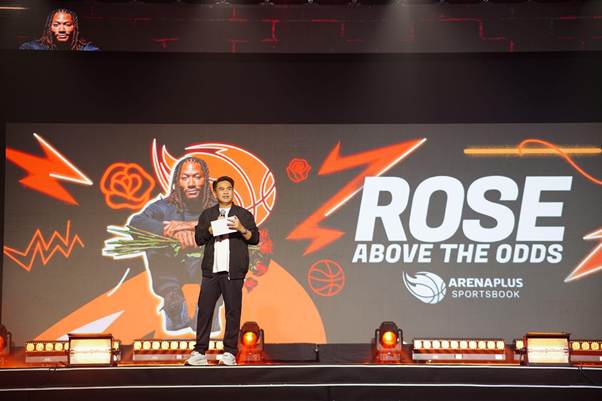PAGCOR-licensed sports betting app ArenaPlus showcased an illuminating stage set-up during Derrick Rose’s endorsement launch event.
