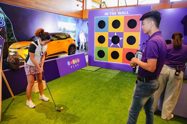 Guests enjoying the BingoPlus golf experiential booth in tsa. Elena Golf during the tournament week.