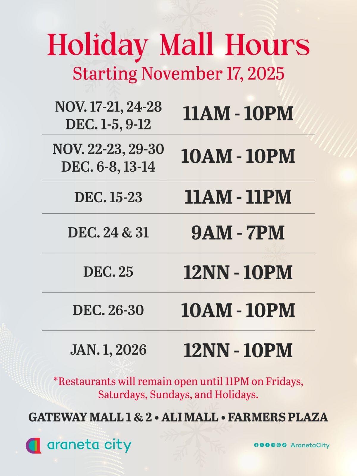 We are pleased to share with you the list of events and activities in Araneta City this coming weekend, from December 3 to 10, 2025.