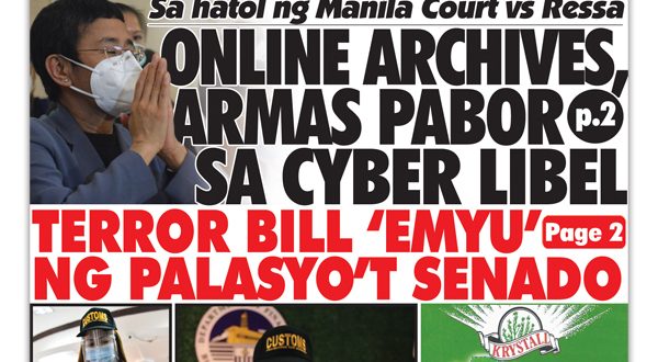 Online archives, armas pabor sa cyber libel (Sa hatol ng Manila Court vs Ressa)