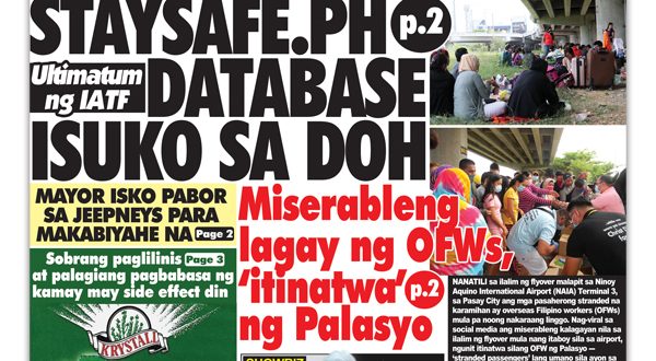ITINATWA ng Palasyo ang nag-trending na video ng may 200 stranded na overseas Filipino workers (OFWs) sa social media, na ilang araw nang pagod, puyat at gutom habang nananatili sa ilalim ng Skyway malapit sa NAIA sa pag-asang makasakay ng eroplano pabalik sa lalawigan. “lilinawin ko lang: VIP treatment talaga ang mga OFW. Wala pong natulog sa ilalim ng …