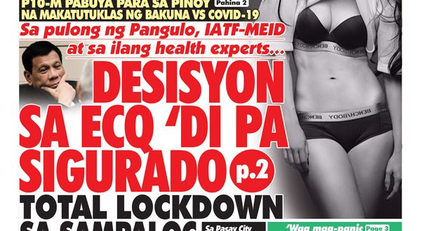 WALA pang desisyon si Pangulong Rodrigo Duterte kung tutuldukan o palalawigin ang Luzon-wide enhanced community quarantine (ECQ) na nakatakdang matapos sa Abril 30. Ayon kay Presidential Spokesman Harry Roque, maaaring ihayag ng Pangulo ang kanyang pasya bago ang katapusan ng buwan. “Wala pong desisyon at hindi po nagsalita ang Presidente. Ang sabi nga po ng Presidente e ang kaniyang desisyon …