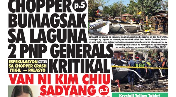 NANANATILING walang malay ang dalawang high-ranking police generals matapos bumagsak ang kanilang sinasakyang helicopter kasama si Philippine National Police (PNP) chief Gen. Archie Gamboa sa bayan ng San Pedro, lalawigan ng Laguna, noong Huwebes ng umaga. Kinilala ang mga nasa kritikal na kondisyon na sina Maj. Gen. Mariel Magaway, PNP Director for Intelligence; at Maj. Gen. Jose Maria Ramos, Director …