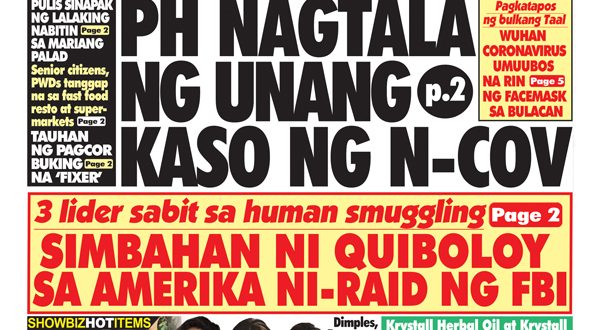 NAKOMPIRMA ng Filipinas ang pinakaunang kaso ng bagong uri ng coronavirus sa isang babaeng Chinese mula Wuhan, ang lungsod sa China na pinagmulan ng virus, pahayag ni Health Secretary Francisco Duque III kahapon. Dumating nitong Huwebes ang resulta ng laboratory test mula Australia na nagpakitang positibo sa 2019 novel coronavirus ang isang 38-anyos Chinese woman na dumating sa bansa noong …