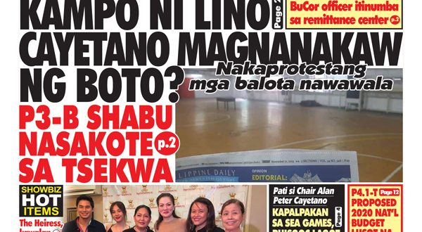 PINAIIMBESTIGAHAN sa Commission on Elections (COMELEC) ang pagkawala ng mga balota na nakalagak sa Taguig City Hall auditorium na sakop ng isang election protest laban kay Taguig Mayor Lino Cayetano. Ang ilegal na paglilipat ng nakaprotestang balota ay pinaniniwalang isang desperadong hakbang ng kampo nina Cayetano dahil sa lumutang na ebidensiyang magpapatunay sa naganap na malawakang dayaan sa nakaraang halalan …