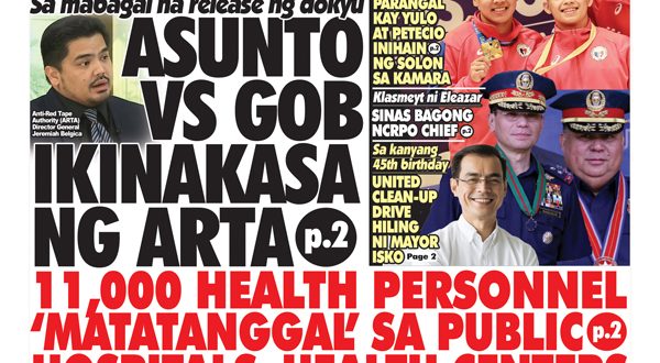 ISANG gobernador ang sasampahan ng kaso ng Anti-Red Tape Authority (ARTA) dahil sa pang-iipit o hindi agad pag-release sa dokumentong dapat ilabas ng kanyang tanggapan. Ito ang sinabi sa press briefing sa Palasyo kahapon ni ARTA Director General Jeremiah Belgica kasunod ng sumbong na nakarating sa kanila hinggil sa sinasabing pagbinbin sa paglalabas ng papeles na dapat i-release ng tanggapan …