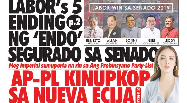 TANGING ang Ang Probinsyano Partylist (AP-PL) lamang ang binitbit ng mga nangungunang kandidato sa Nueva Ecija sa kanilang proklamasyon kamakailan sa naturang lalawigan. Pinangunahan ni incumbent Governor Aurelio Umali na tumatakbo sa kanyang ikalawang termino ang pagsusulong sa mga kandidato ng partidong Unang Sigaw gayondin sa kandidatura ng Ang Probinsyano Party-List na sinuportahan pa ng sikat na aktres na si Meg …
