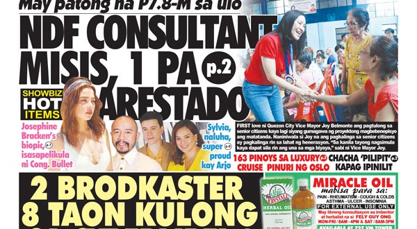 ISA pang consultant ng National Democratic Front (NDF) kasama ang kanyang asawa na mataas na opisyal din ng Communist Party of the Philippines (CPP) ang inaresto sa bayan ng Liliw, sa lalawigan ng Laguna. Iniulat ng pulisya na dinakip nila si Francisco “Frank” Fernandez, 71 anyos, spokesperson ng NDF sa Negros. Pang-anim si Fernandez sa 23 miyembro ng NDF peace …