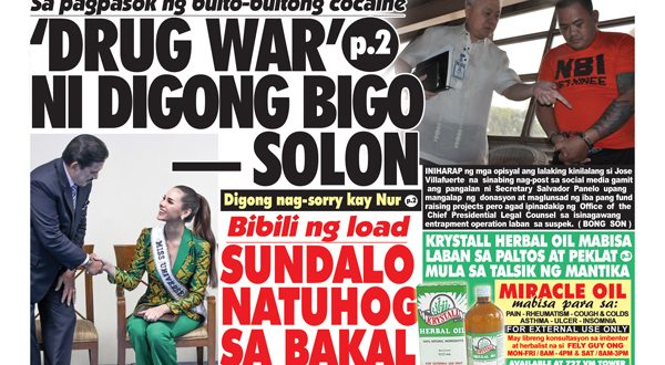 ANG pagbagsak ng bulto-bultong cocaine at iba pang uri ng illegal na droga sa bansa ay isang malinaw na indikasyon na bigo ang Pangulong Duterte sa kanyang madugong “war on drugs.” Ayon kay Akbayan Rep. Tom Villarin, ‘yung mga nahuling “cocaine bricks” sa karagatan ng bansa ay isang babala sa mas malaking shipment ng droga. “The recent seizures of cocaine …