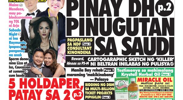 NAPUGUTAN ang isang 39-anyos Pinay domestic helper matapos hatulan ng kamatayan nitong Martes sa Saudi Arabia dahil sa kasong murder, ayon kay Department of Foreign Affairs (DFA) Assistant Secretary Elmer Cato, kahapon. Nagpaabot ang DFA ng pakikiramay sa pamilya ng Pinay matapos hatulan ng kamatayan ng Saudi Supreme Judicial Council. Tumanggi si Cato na magbigay ng karagdagang detalye sa pagkakakilanlan ng …
